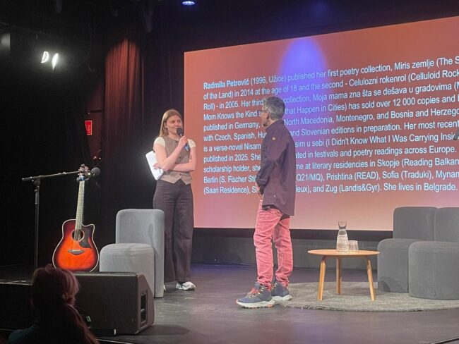 Imali smo veliku čast da pred švedskom publikom predstavimo naše sjajne autore – Radmilu Petrović, Marka Pogačara, Faruka Šehića i Mašu Kolanović. Oni su učestvovali u okviru našeg putujućeg programa PROSTORI SLOBODE, ali su imali i jedinstvenu priliku da dele binu i s drugim autorima Littfesta, poput Rodija Dojla, Sofi Oksanen i Džouzi Vajthed u okviru drugih festivalskih programa. Radmila Petrović i Marko Pogačar su, primera radi, čitali svoje stihove u okviru Versopolisa, panevropske poetske mreže, dok je publiku posebno oduševio muzički performans naše Ane Ćurčin.