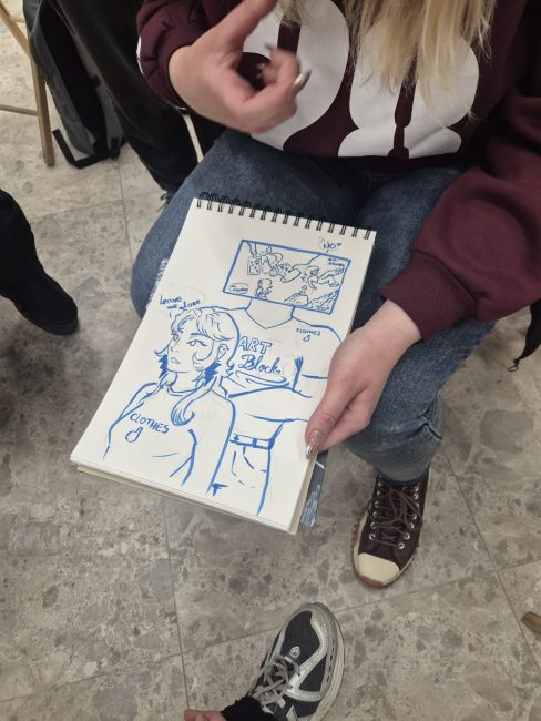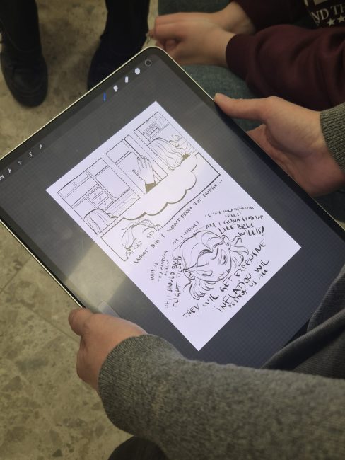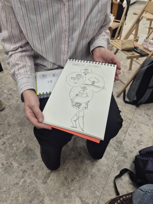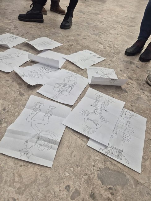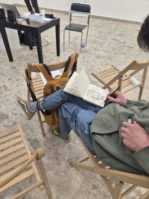 Through interaction with the exhibition, a space for exchange was opened between these two authors and their different perspectives on creative work. The workshop thus began with a conversation in which Aleksandar and Bim shared their personal experiences of creating comics, collaborating with international publishers, as well as the local challenges and difficulties faced by comic creators in both Sweden and Serbia.