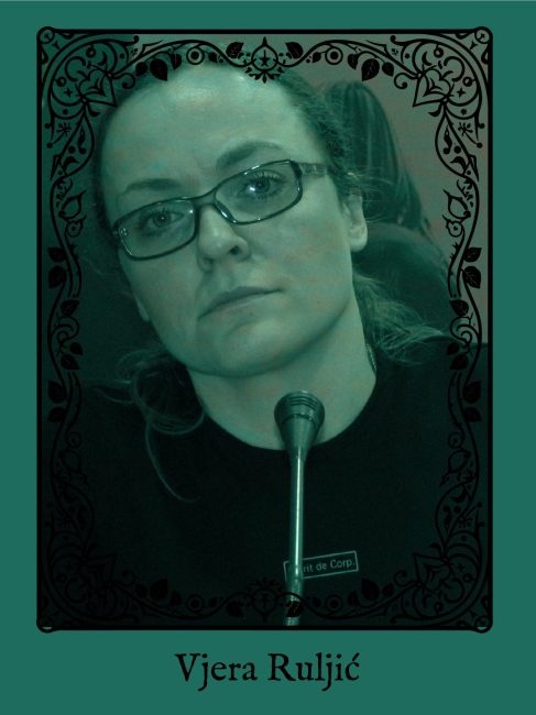 The focus is on stories of resistance and persecution: from Mira Furlan and the “Witches of Rio” to Vesna Teršelič and Nataša Kandić; from the murdered Suada Dilberović and Olga Sučić to the brave actions of Borka Pavičević, CZKD (Center for Cultural Decontamination), the Center for Anti-War Action, Women in Black, the Spiritual Republic of Zicer, Biljana Jovanović, Lepa Mlađenović, Igballa Rogova, and other important protagonists whose biographies represent the nodal points of this important legacy.
