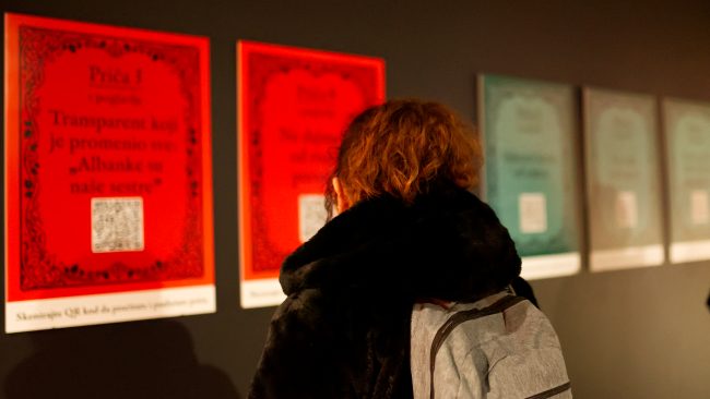 On Thursday, April 2, the second event of the regional program Not a Fairytale But… was held at the Historical Museum of Bosnia and Herzegovina (Zmaja od Bosne 5, Sarajevo). The event explored women’s peace activism during the 1990s through a panel discussion and a multimedia exhibition. The discussion featured collaborators of the second chapter: Milena Berić, Vjera Ruljić, Dunja Karanović, and Maja Abadžija. Before and after the conversation, visitors also had the opportunity to view an audio-visual and textual installation showcasing some of the most striking quotes from banners at 1990s peace demonstrations, Lepa Mlađenović’s Manifesto of Women’s Solidarity Politics, as well as the published stories from the first and second chapters.